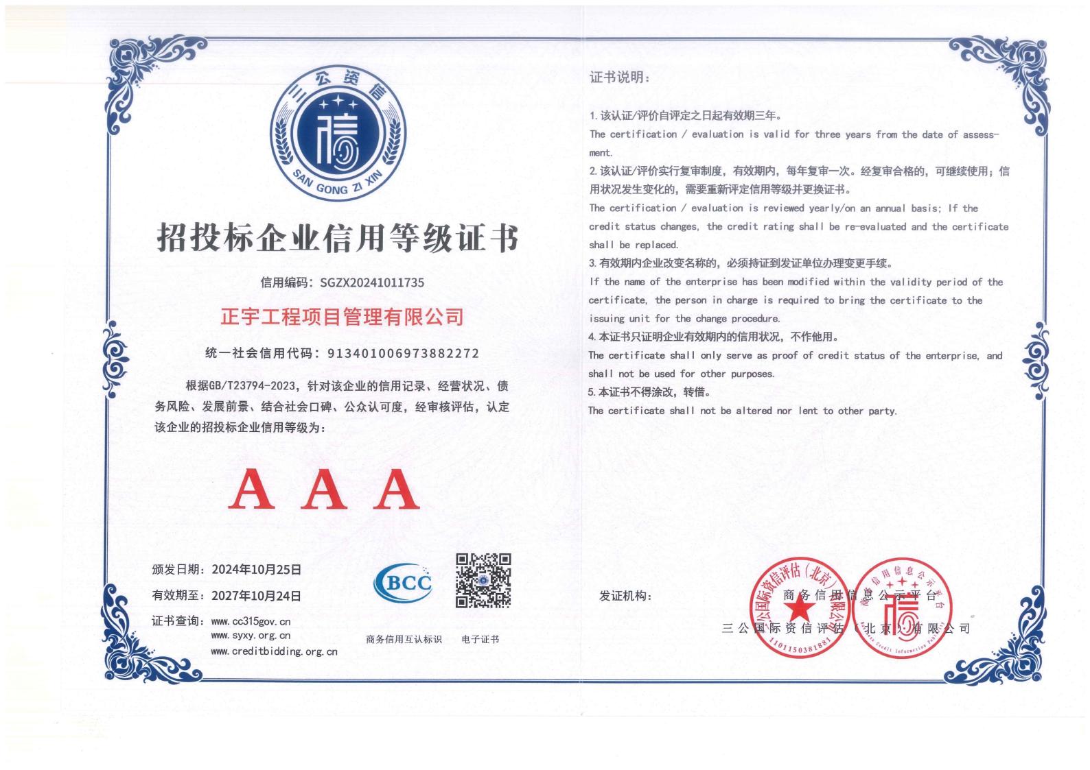 正宇工程項目管理有限公司成立于2009年,注冊資金6080萬,注冊地為浙江省寧波市杭州灣新區。公司擁有國家住建部頒發的工程造價企業甲級資質、招標代理資質等等;是一家專業從事工程項目管理、企業管理、政府采購代理服務、招投標代理服務、信息技術咨詢服務及其他技術服務的綜合型工程咨詢公司。
